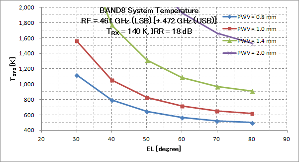 - The following TSYS calculations use the atmosphere model in ALMA (https://almascience.nao.ac.jp/tools/about-alma/atmosphere-model).