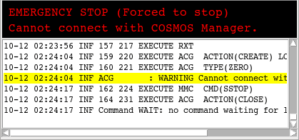 - Workaround: Nothing to do. If the frequency is high, restart COSMOS3 at the ASTE site.