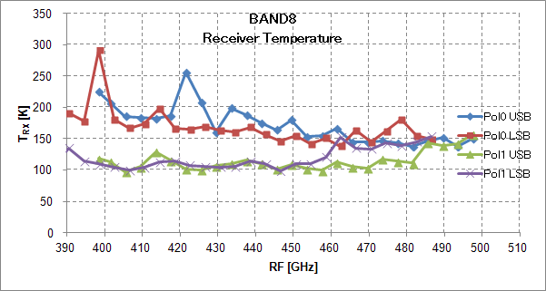 - Receiver temperatures (TRX) and Image Rejection Ratio (IRR)
