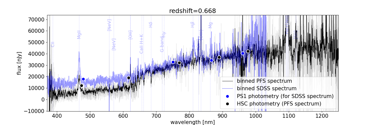 測光的赤方偏移と銀河のSED進化銀河までの距離を測定する基本的な手法は分光観測をすることです。 しかしながら、分光観測は非常に時間のかかる観測で、多くの銀河に対して距離を測定することは 困難です。 測光的赤方偏移とはよりお手軽に測光データ(明るさや色など)だけを使って距離を 推定する方法で、近年の大規模サーベイでは必要不可欠のツールとなっています。 大きく分けてテンプレートフィッティングと機械学習の二つの手法があります。 二つとも興味はありますが、現在は主に前者で精度の向上を目指しています。 ベイズ事前確率を星形成率などの銀河の物理量に対して用いて、テンプレートを実質的に 赤方偏移進化させることで精度が上がります。 赤方偏移と同時に銀河の物理量も整合的に 見積もることができるという特徴もあります。 このコードは現在進行中のHSCサーベイで 広く用いられていますし、上の巨大銀河の形成の研究でも使われています。